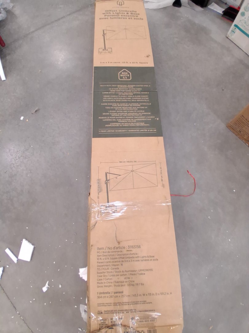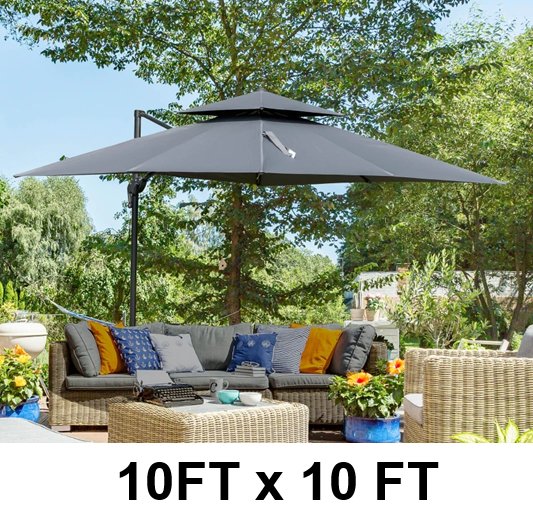 hometrends Square Solar LED Offset Umbrella & Base - 10' Feet x 10' Feet - Light grey