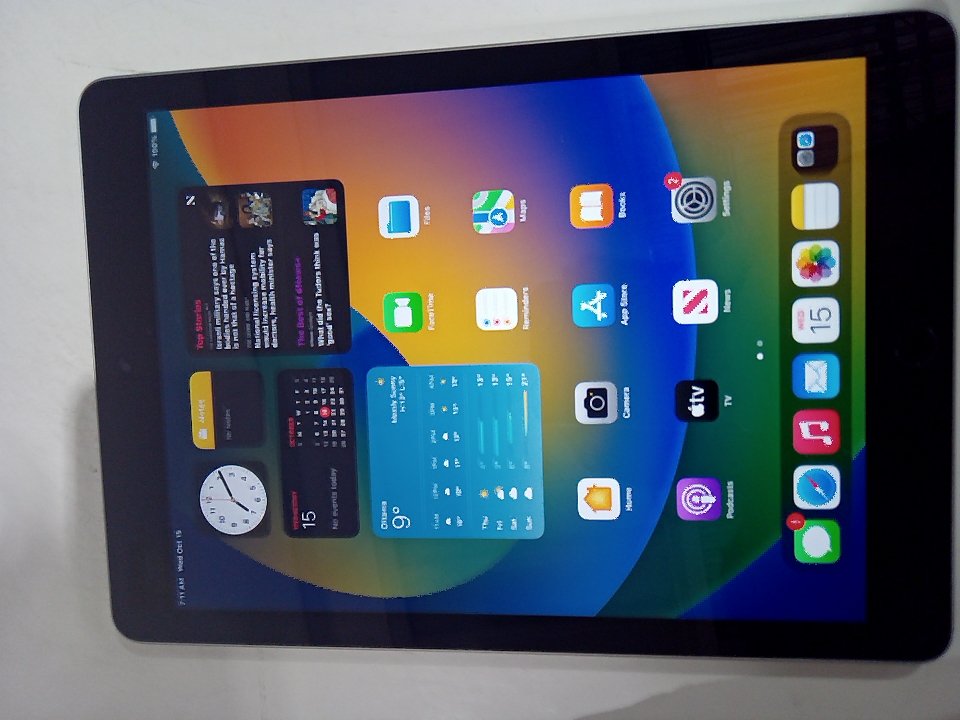 Tested for power, basic setup and front/back camera functionality. Verified iPad specifications through settings. (SEE PHOTOS)