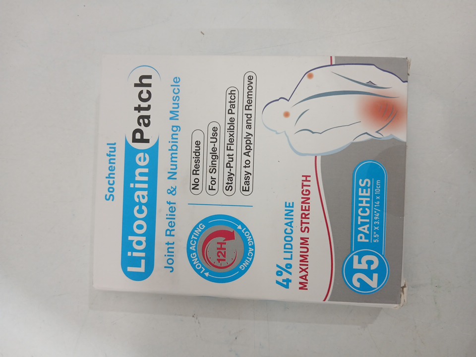 25PK Sochenful 4% Lidocaine Patches - Maximum Strength, Pain Patches for Shoulder, Joints & Muscle