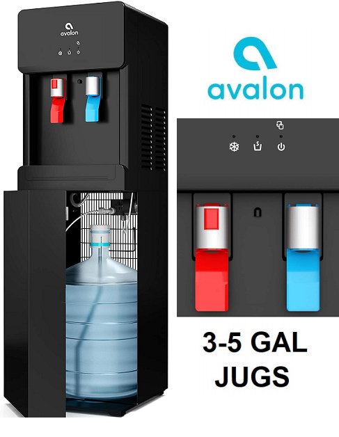 AVALON BOTTOM LOADING WATER COOLER DISPENSER WITH TOUCHLESS PADDLE DISPENSERS FITS STANDARD 3-5 GAL JUGS (MODEL:A6BLWTRCLRBLK)