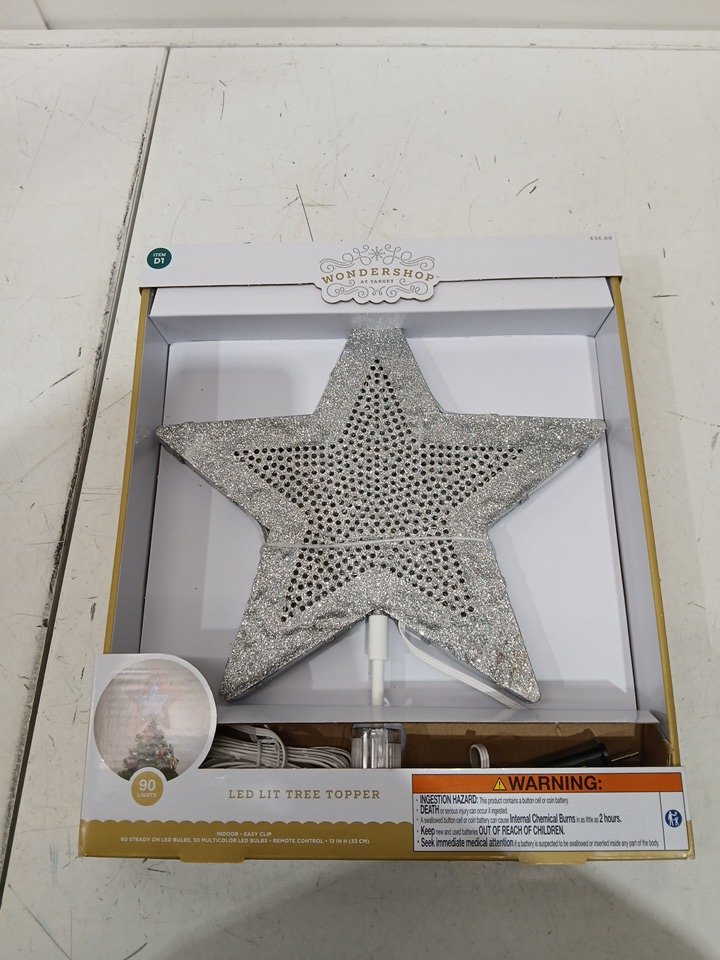Wondershop Pre-lit Glittered Metal Star Christmas Tree Topper with Colour Changing Lights - 13.25" - SILVER