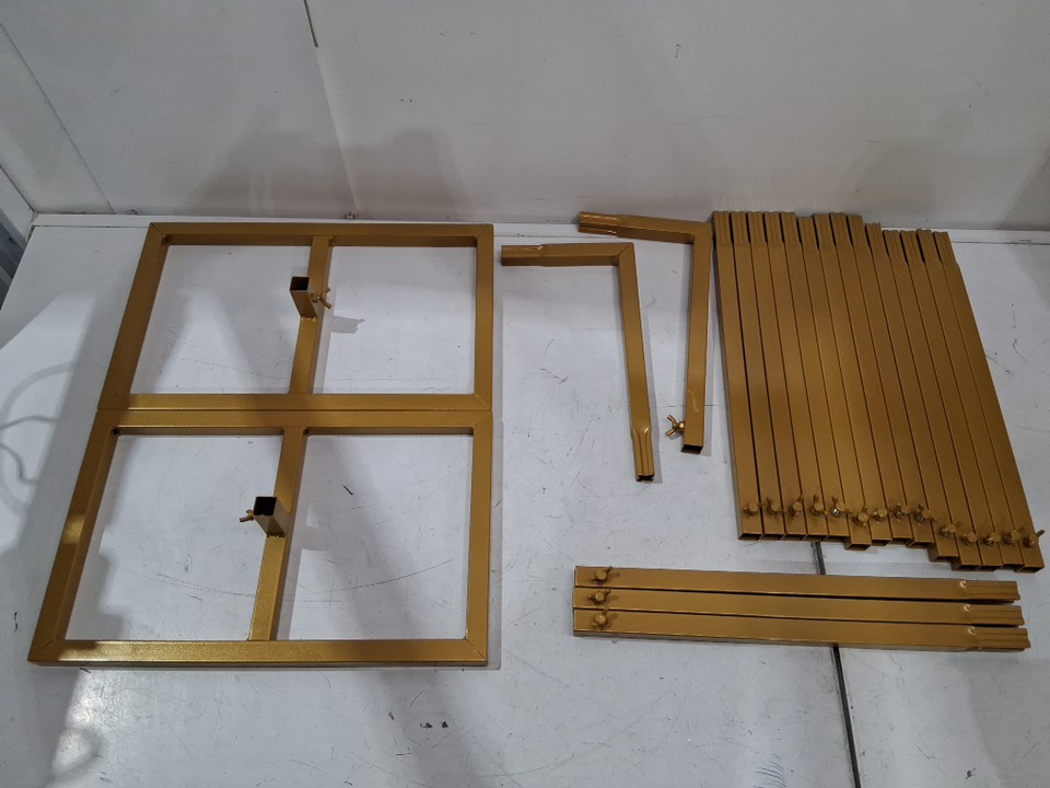 please note there was no information/manual that came with the frame, therefore we are unsure of the exact size. There are also some scuffs/scratches on some pieces from previous use