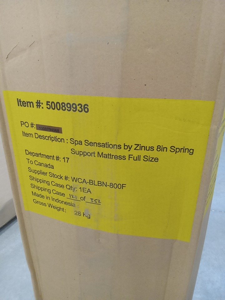 Zinus Spa Sensations 8 inch Support Spring Mattress - full (model: WCA-BLBN-800F)