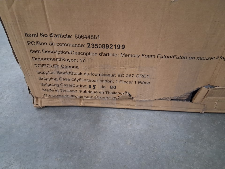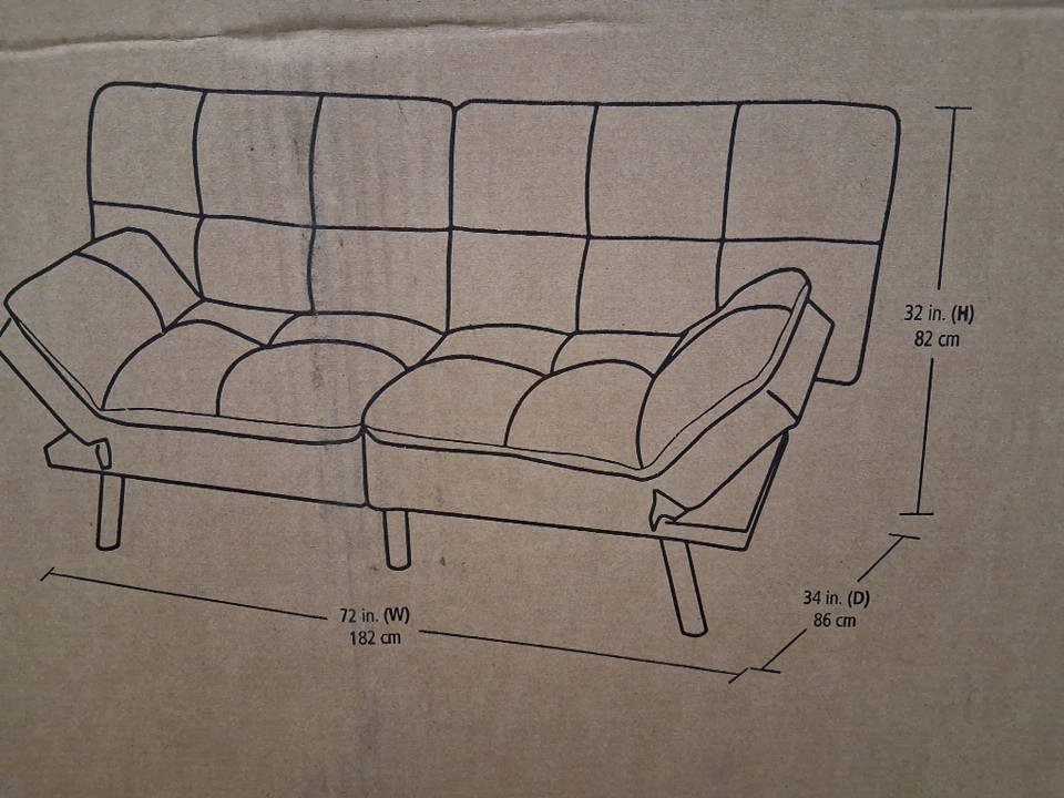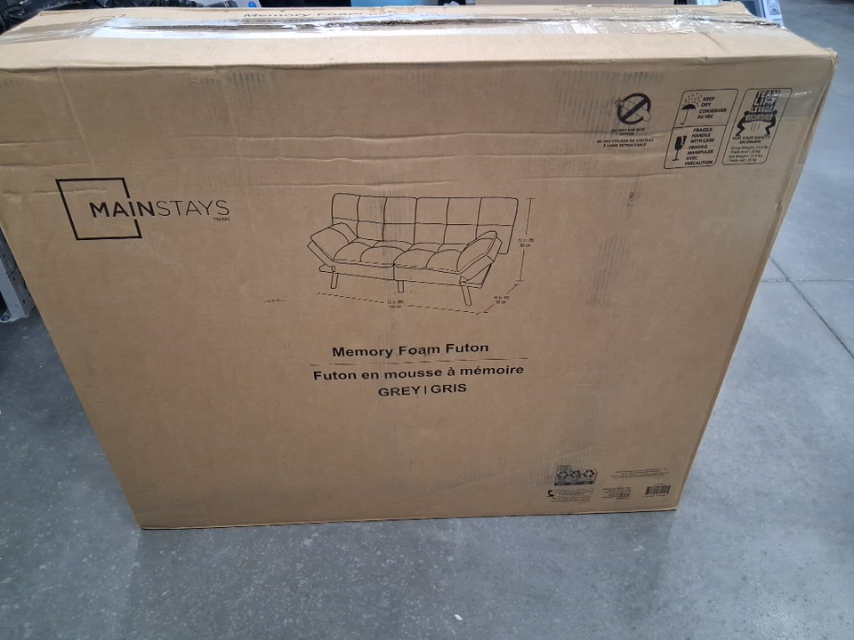 Mainstays memory foam futon with foldable armrest - 72" x 34" x 32" - gray - (model: 50644881)