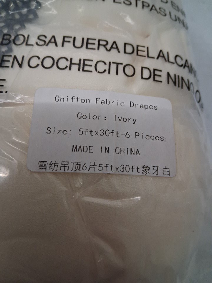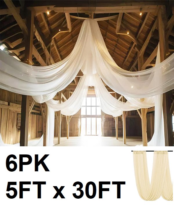 6PK CHIFFON ceiling drapes decoration for parties, weddings - 5ft x 30ft - Ivory