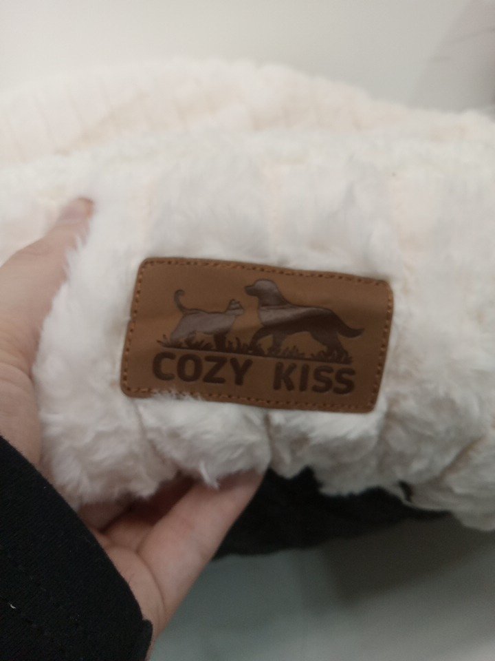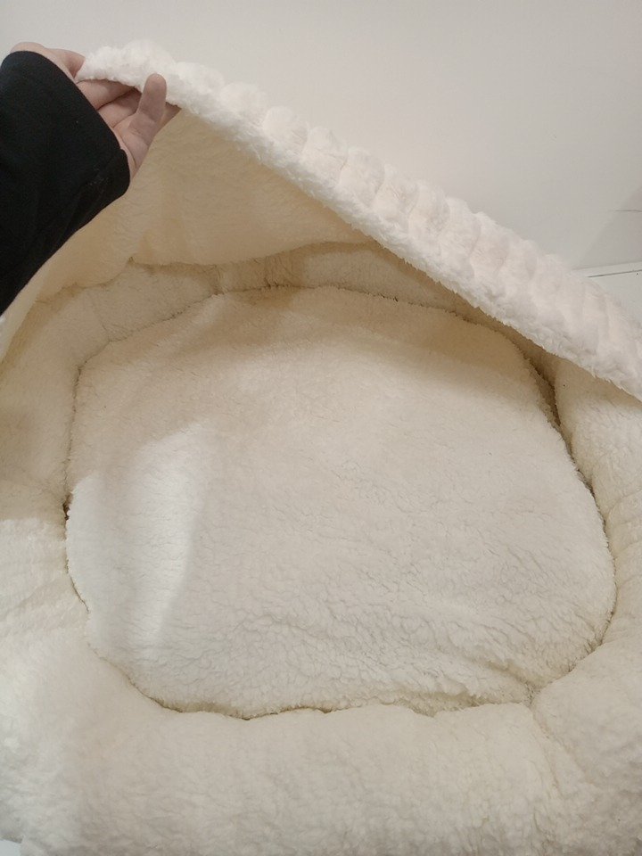 Cozy kiss round anti-anxiety pet Bed with Hooded Blanket - 35" - cream/off white