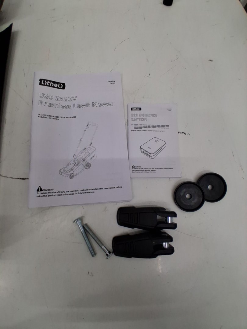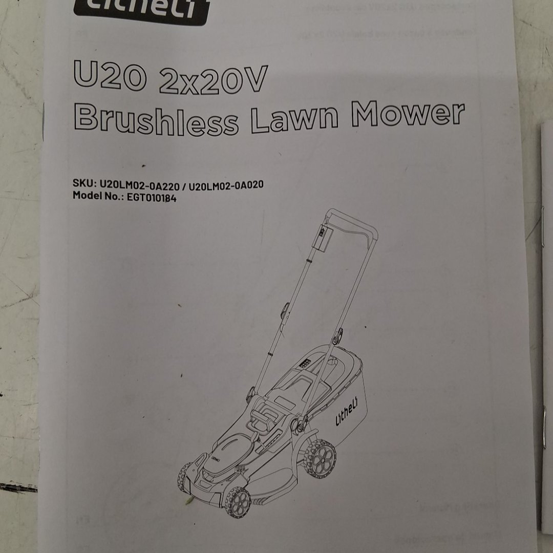 Litheli Cordless Lawn Mower with adjustable height 2x20v battery- 18"- white/Black (model: u20lm02-0a220/egt010184