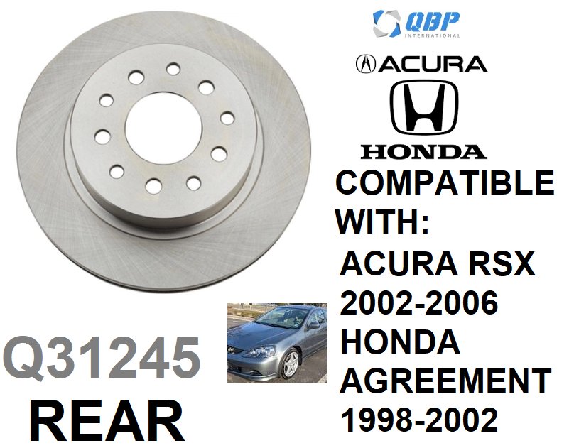 qbp international Rear Disc Brake Rotor - compatiable with acura rsx 2002-2006 / honda agreement 1998-2002 - (model:q31245)