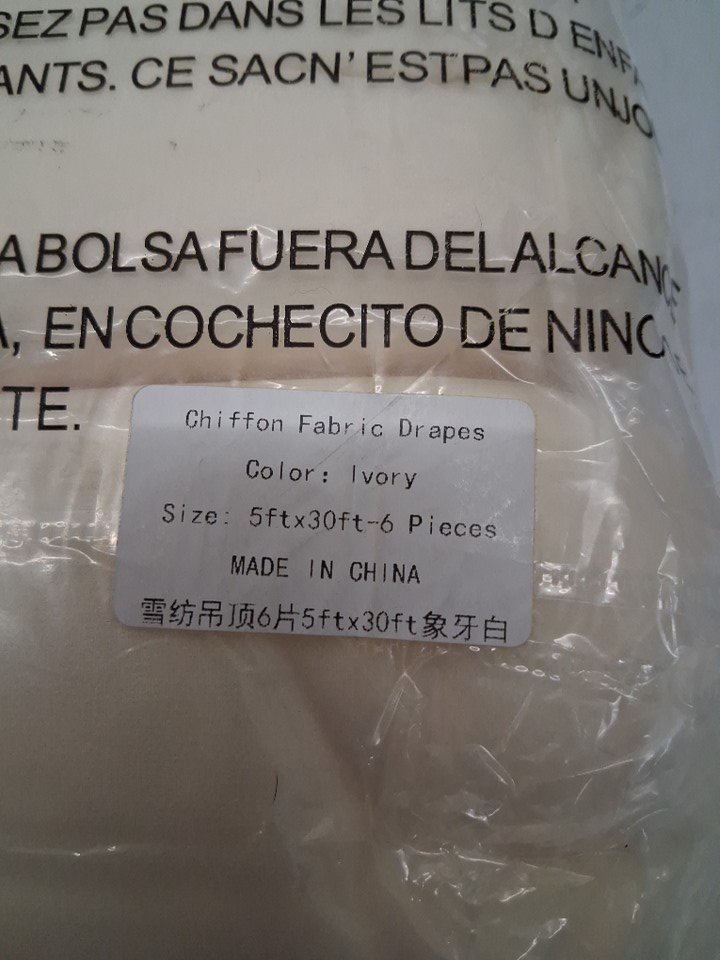 6PK CHIFFON ceiling drapes decoration for parties, weddings - 5ft x 30ft - Ivory