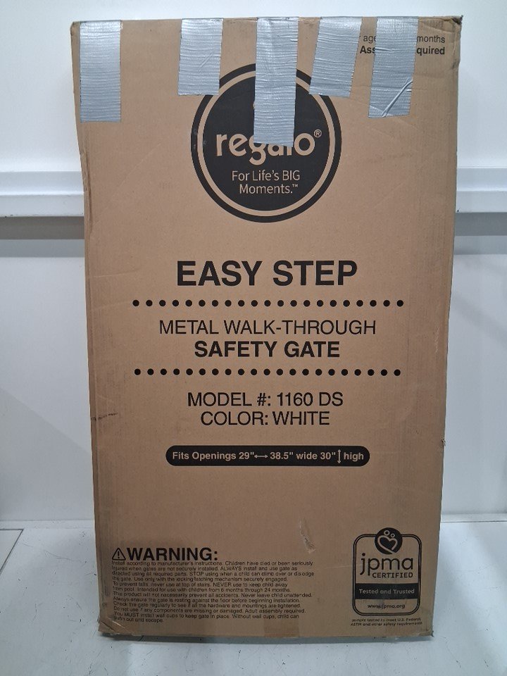 REGALO EASY-STEP METAL WALK-THROUGH SAFETY GATE - 30"x29'' to 38.5'' - WHITE - (MODEL: 1160DS)