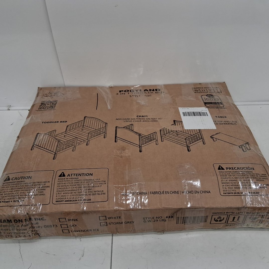 DREAM ON ME PORTLAND 3 IN 1 CONVERTIBLE TODDLER BED - LOW TO FLOOR DESIGN WITH NON TOXIC FINISH - 50LBS WEIGHT CAPACITY - 57" x 29" x 28" - GREY - (MODEL: 638)