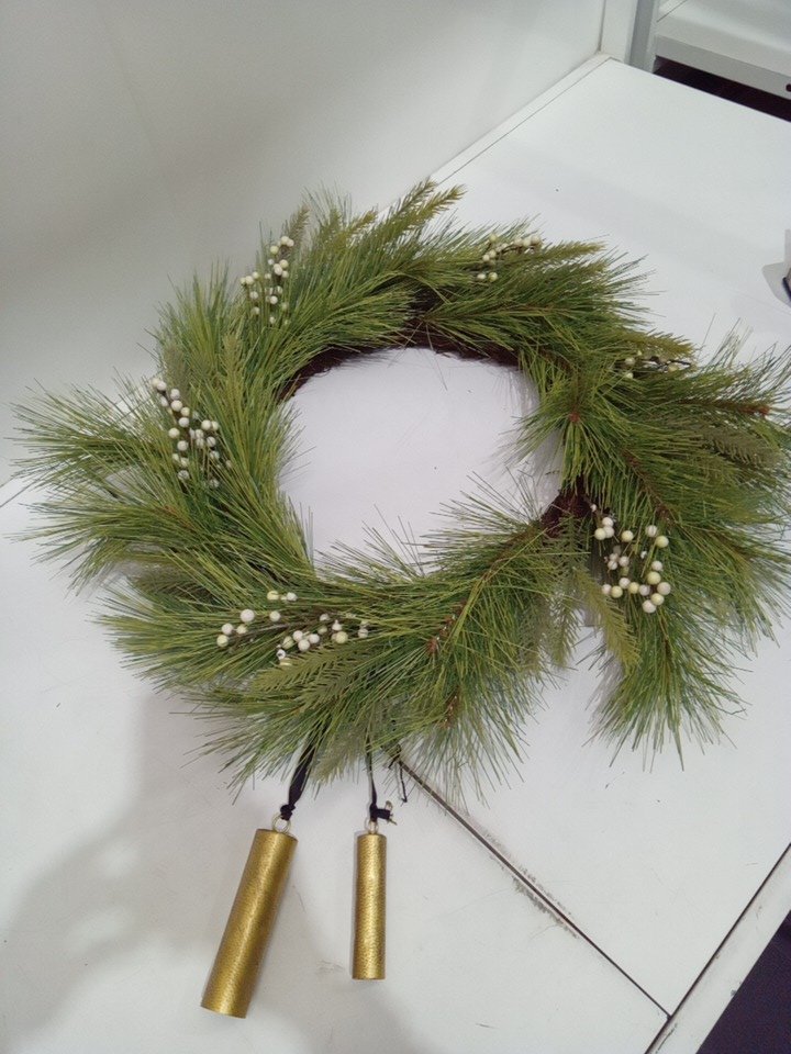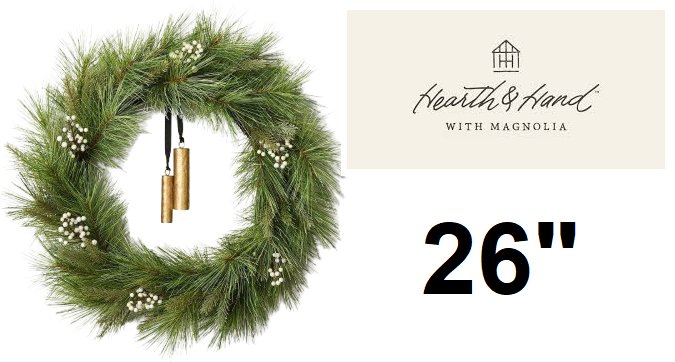 Hearth and Hand with Magnolia Faux White Berry Pine Wreath with Bell - 26" - green/brown/white