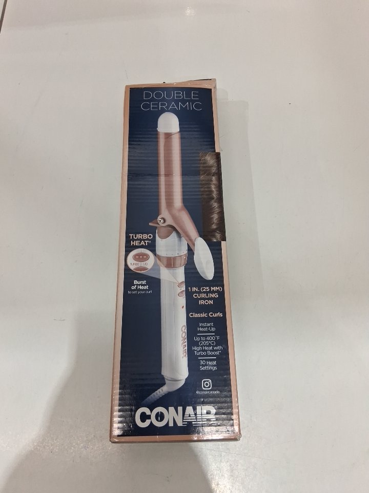 CONAIR DOUBLE CERAMIC CURLING IRON - 1" - WHITE/ROSE GOLD (MODEL: CD701GNC)