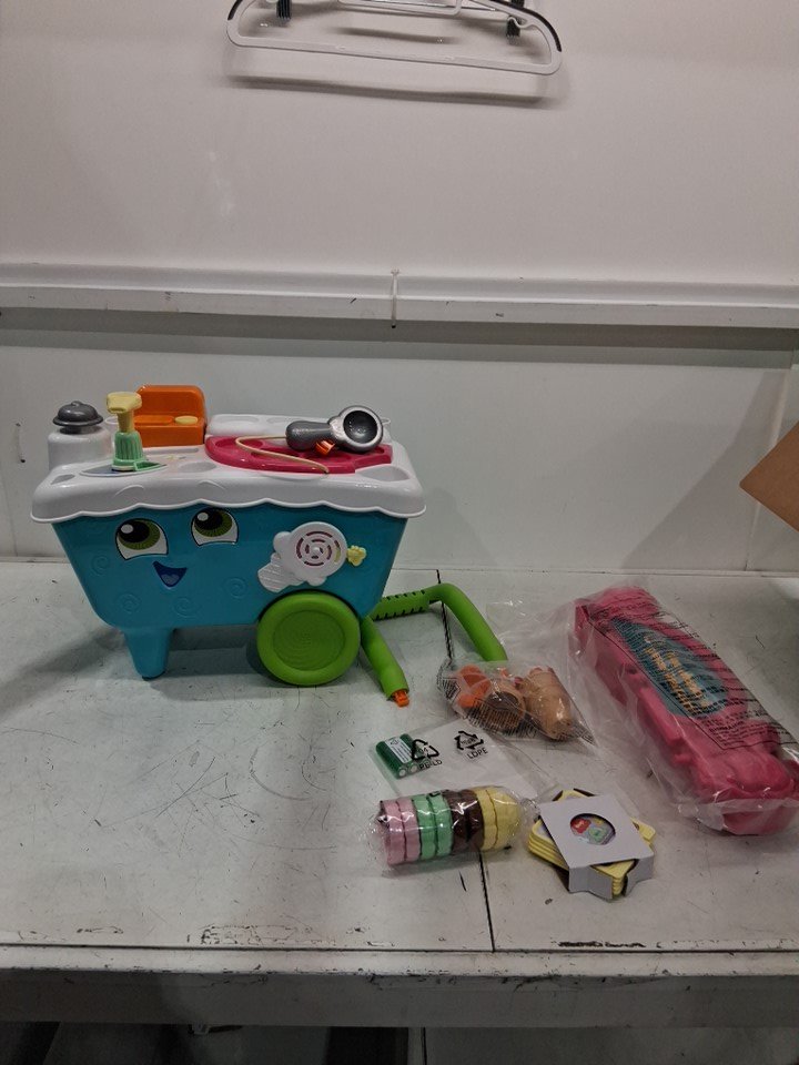 * FRENCH VERSION* LEAPFROG SCOOP AND LEARN PLASTIC ICE CREAM CART TOY SET FOR KIDS AGED 2+YRS - PINK, WHITE & BLUE (MODEL: 80-600700)