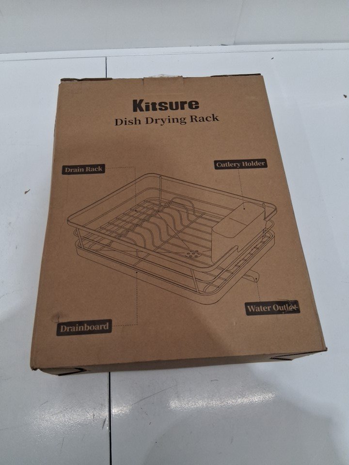 Kitsure Dish Drying Rack Kitchen Counter Organizer with Cutlery Holder - 12" x 15" - grey (model:KI949)