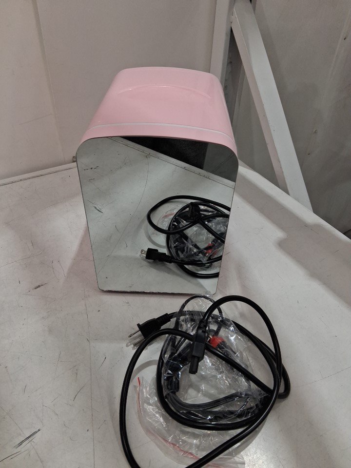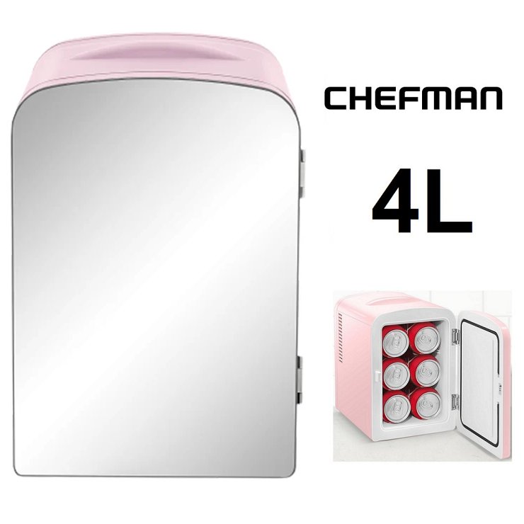 CHEFMAN ICEMAN MINI PORTABLE PERSONAL STORAGE UNIT HEATER OR FRIDGE WITH MIRROR - 4L - PINK (MODEL: RJ48-M-PINK-4-CA)