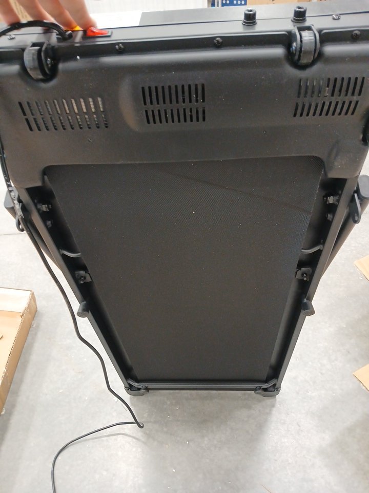 The screen on our treadmill is bigger than the cover image and our handle bars look a little different. This item's remote is corroded and cannot work. Another remote is necessary in order for the item to function. This item has white marks on its tread and styrofoam residue on the edge. This item has been tested for power