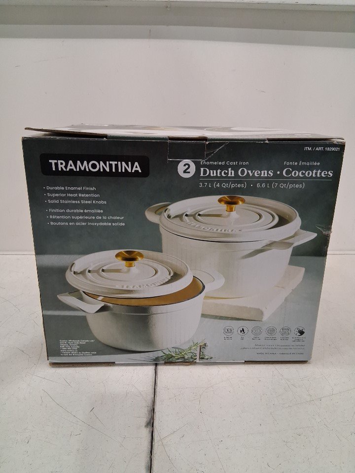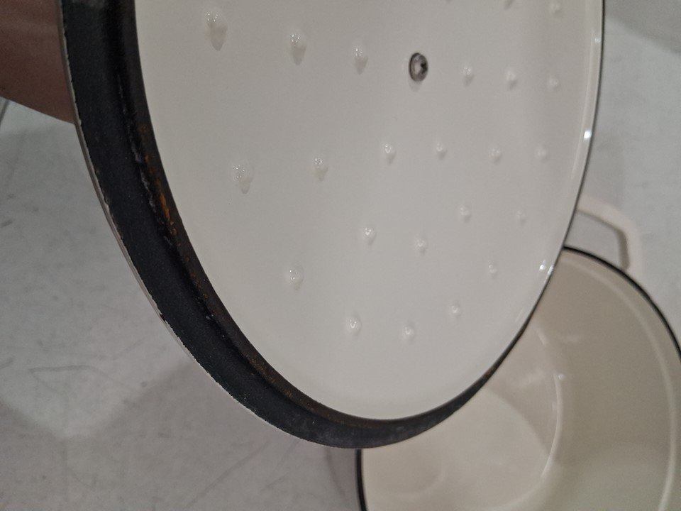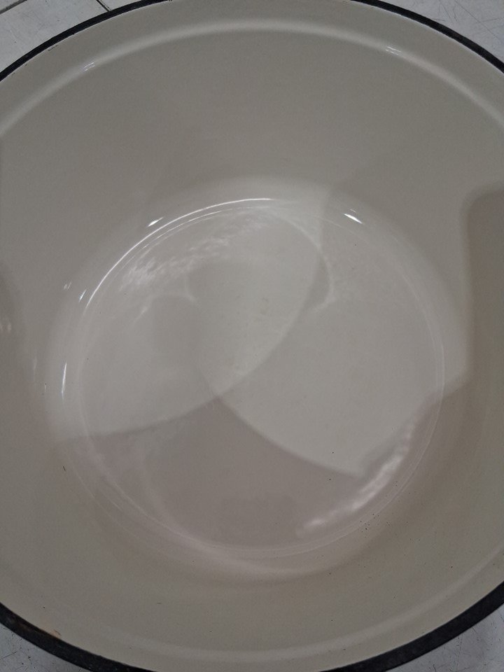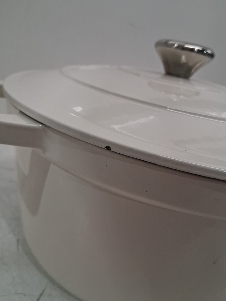 There is some food residue in the pot and light signs of wear. The pot is also packaged in a different company's dutch oven box indicating previous use (see photos)