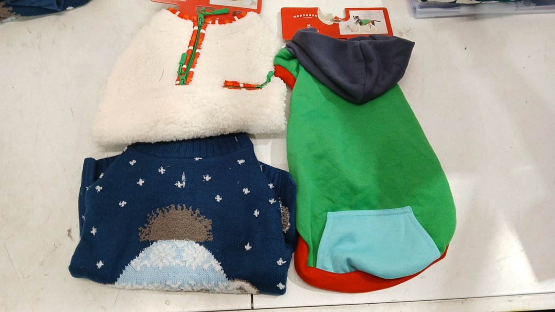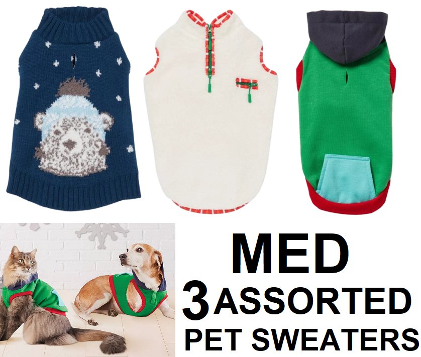 3 ASSORTED WONDERSHOP COZY HOLIDAY PET SWEATSHIRT AND VEST - MEDIUM - NAVY BLUE/BEIGE