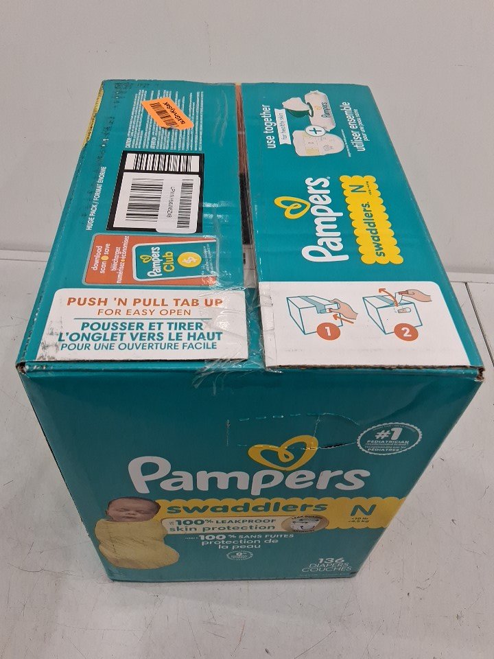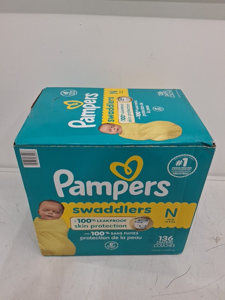 136PK PAMPERS SWADDLERS DIAPERS - NEWBORN SIZE 0