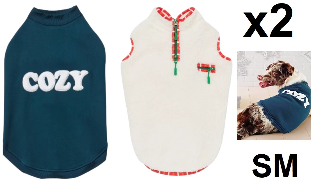 2 WONDERSHOP COZY HOLIDAY PET SWEATSHIRT AND VEST - SMALL - NAVY BLUE/BEIGE