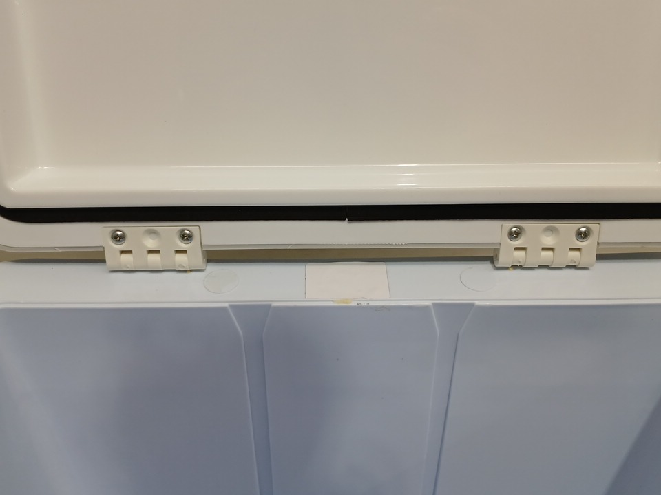 the lid hinges are missing one pin (the other is present, but not in place). light markings & residue are present due to use