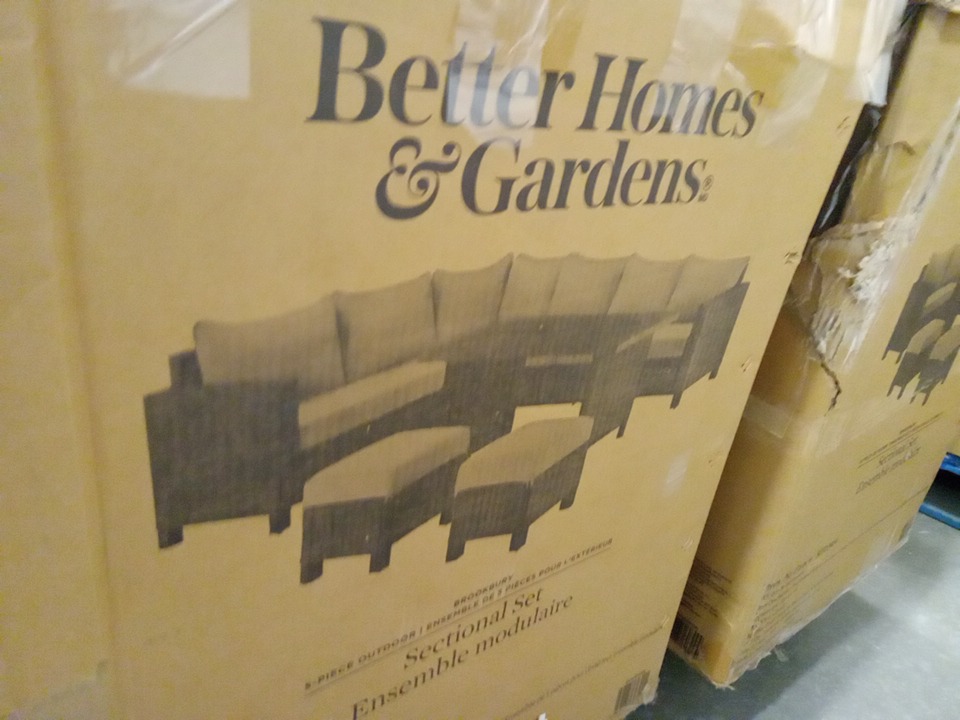5PC Better Homes & Gardens Brookbury Patio Outdoor Sectional Set Includes Left-Arm Sofa, Right-Arm Sofa, Corner Section, Ottoman, and Tempered-Glass Coffee Table with All-Weather Handwoven Wicker and Thick Cushions - Tan Brown (Model: 5030346)
