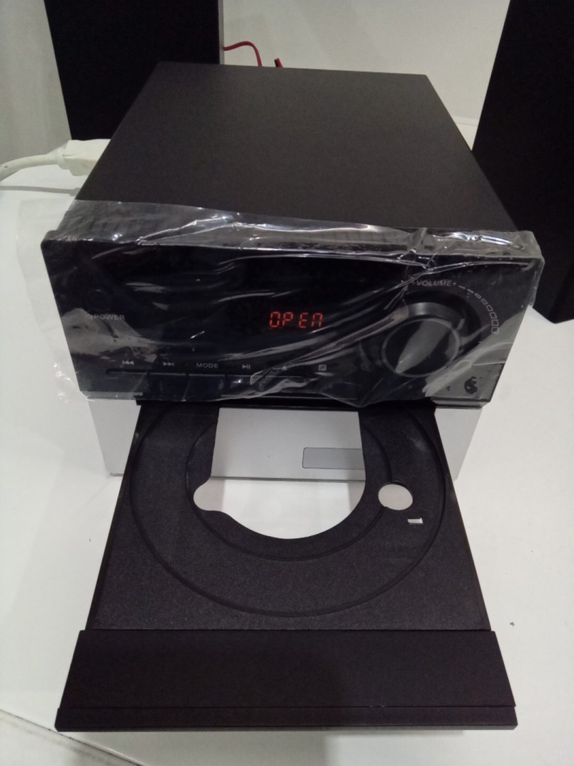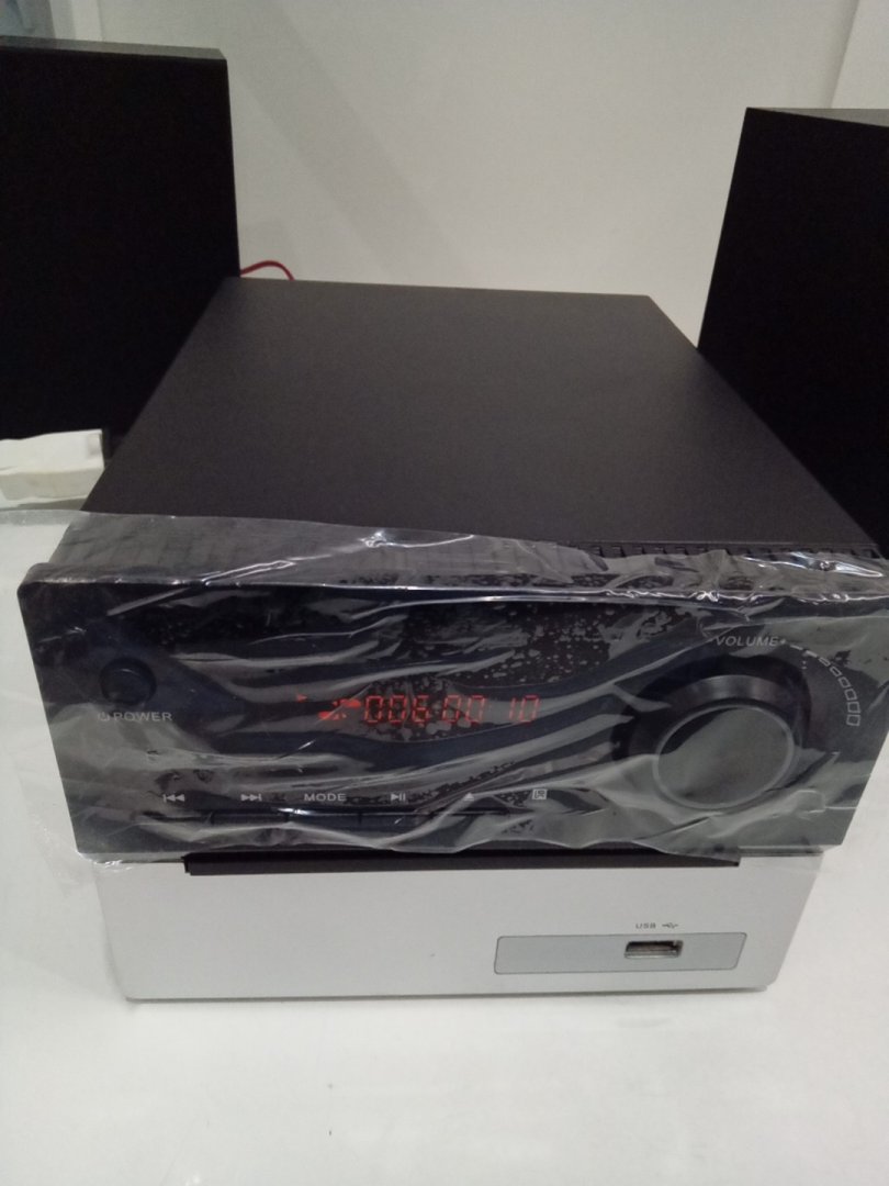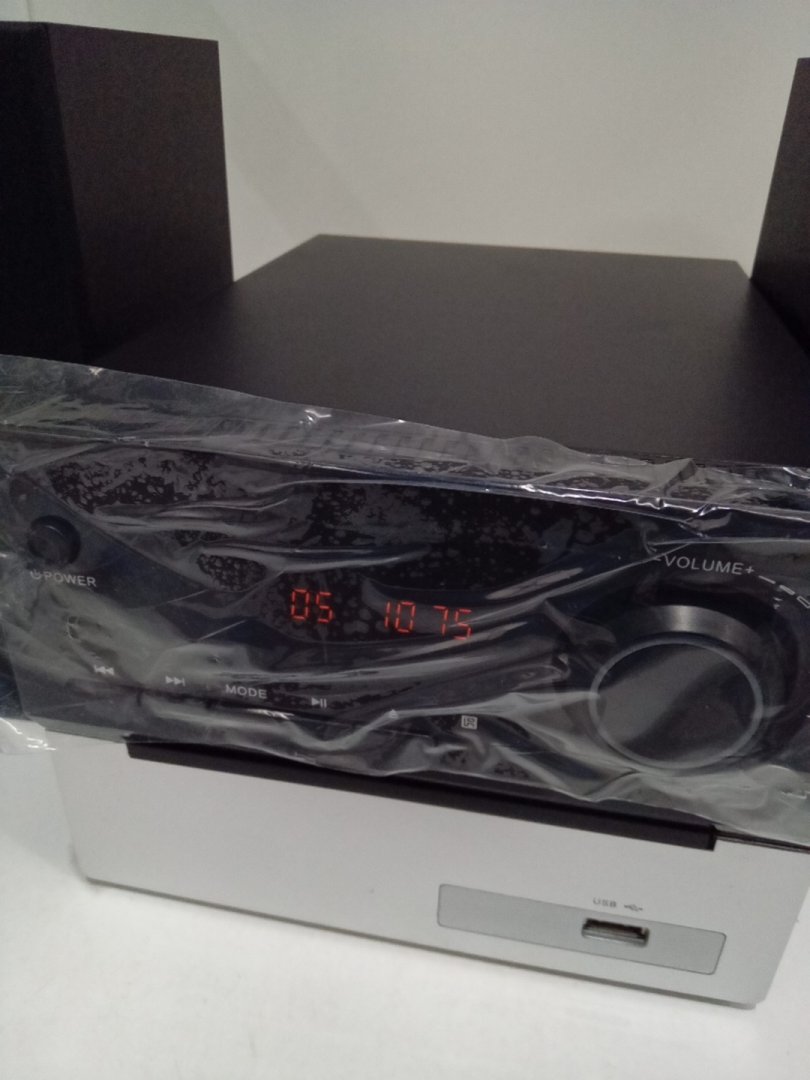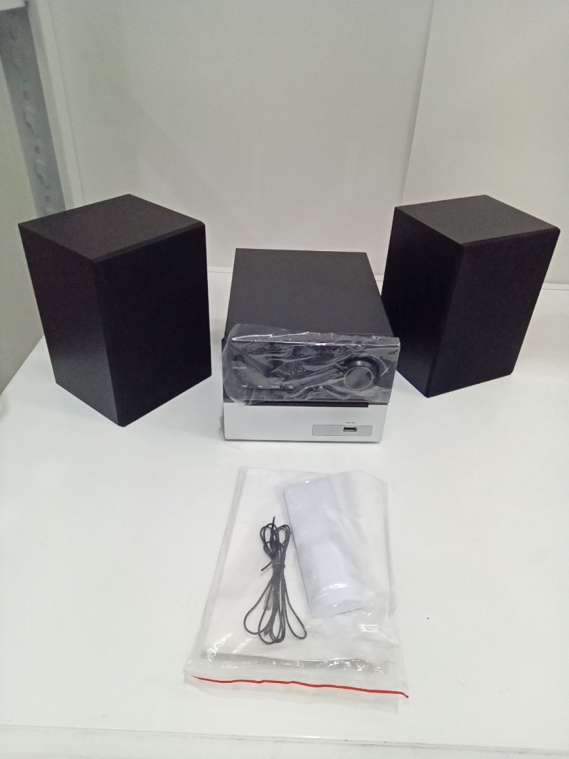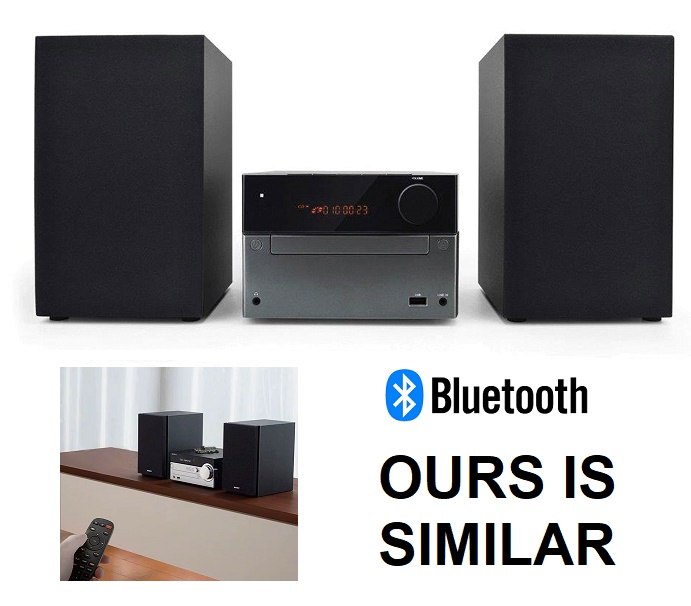 Mini Home Stereo System with 2 Speakers, FM Radio, Bluetooth, and CD Player - Black/Silver (Model: MT-SESY108 / HD DVD-MT)