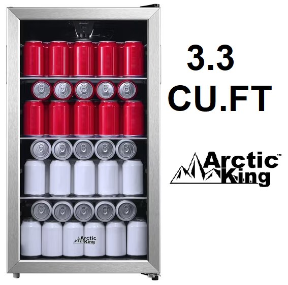 Arctic King 115-Can Beverage Fridge & Cooler - 3.3CU.FT - STAINLESS STEEL (MODEL: ARV115B1AST)