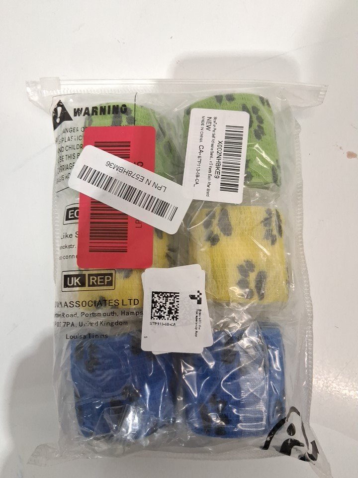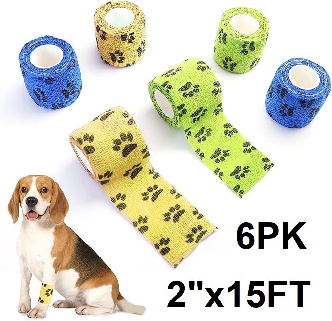 6PK PET SLOWTON SELF ADHESIVE WRAP - 2"X15FT - GREEN/YELLOW/BLUE