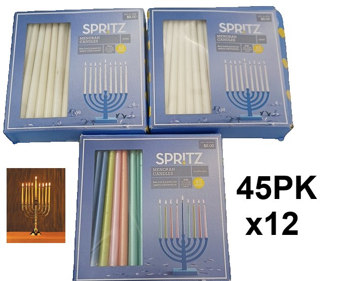 12 (45PK) spritz chanukah candles - fits most menorahs - assorted colours