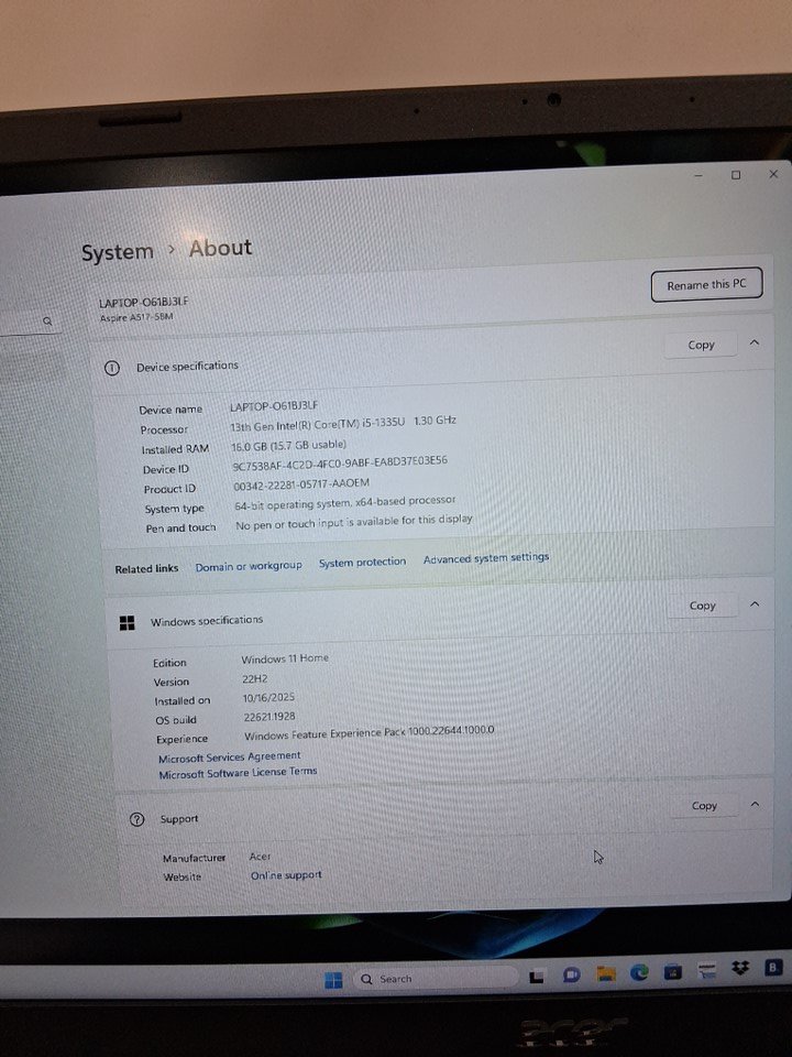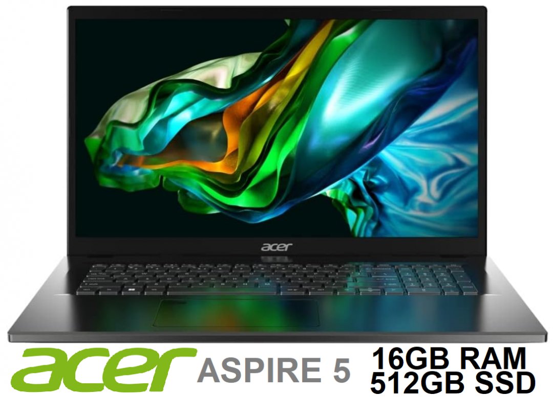 ACER ASPIRE 5 LAPTOP - 17.3" FHD 1920X1080 IPS PANEL - INTEL I5-1335U - 16GB RAM - 512GB SSD - WINDOWS 11 -STEEL GREY (MODEL: A517-58M-54MJ / N23H6)