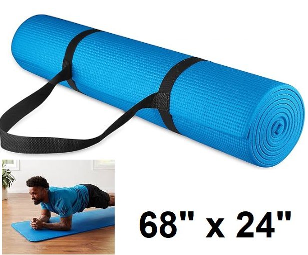 Fitvids every day essentials high density anti tear yoga mat with carrying strap - 68" x 24" x 1/4" - blue (model: ‎BFGY-P1BL)