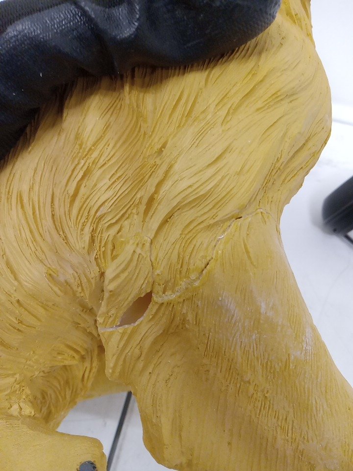Item looks new but upon inspection we found there is crack on the front leg and its glued together.