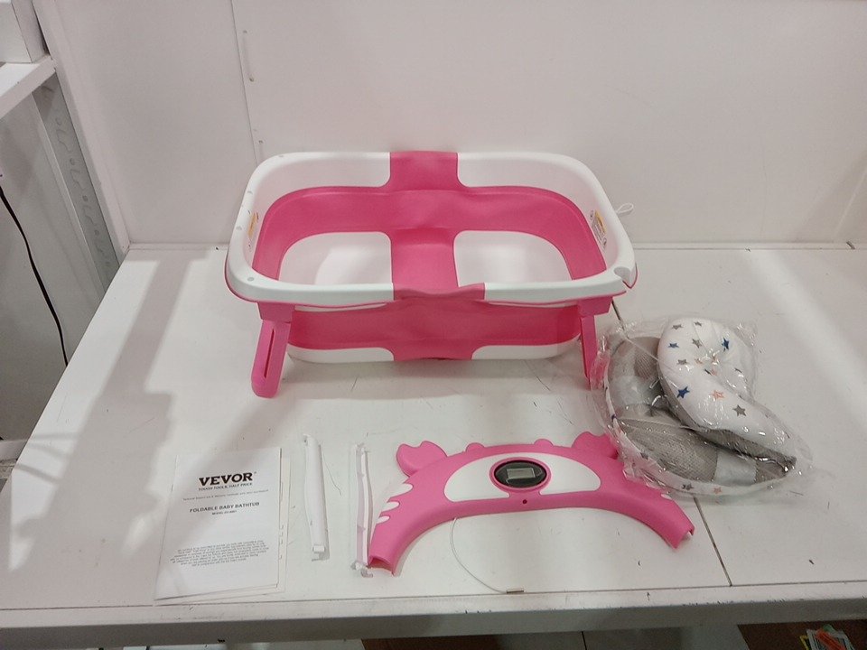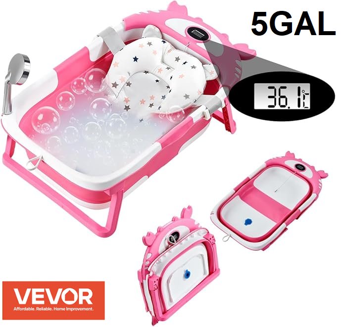vevor collapsible baby bathtub with thermometer - 5gal - pink/white (model: zh-8807)