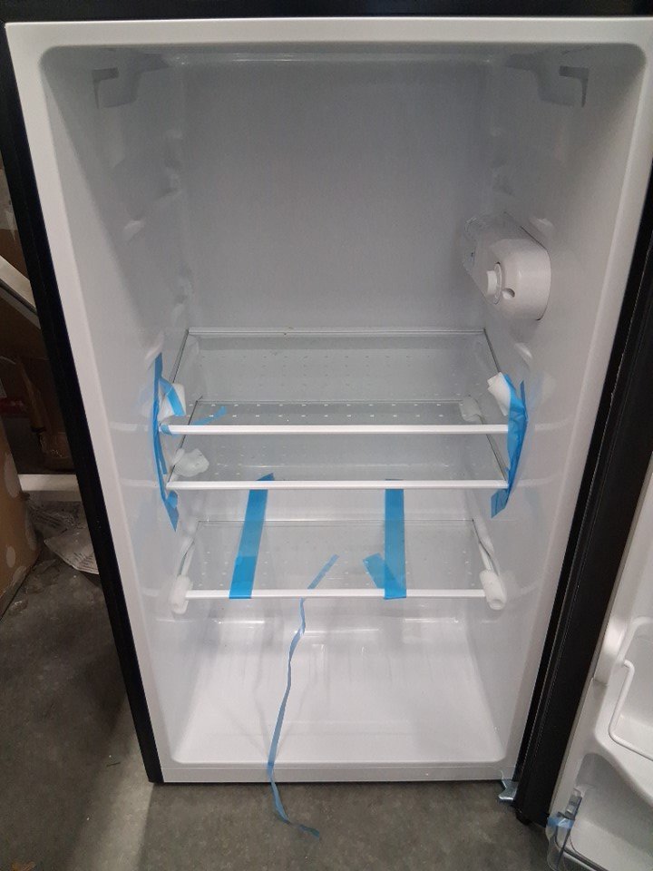 Please note that the item was tested for basic power and cooling There are some dents on the body of the item presumably caused during shipping. The bottom door hinge has fallen off, and the door has no support. This will need to be fixed for proper function. The pin for the door is included