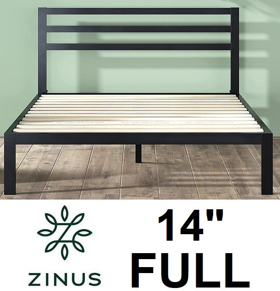 Zinus MIA Modern Studio 14" Platform 1500H Metal Bed Frame / Mattress Foundation / Wooden Slat Support / with Headboard - FULL, BLACK (AZ-ASMPH-15F)