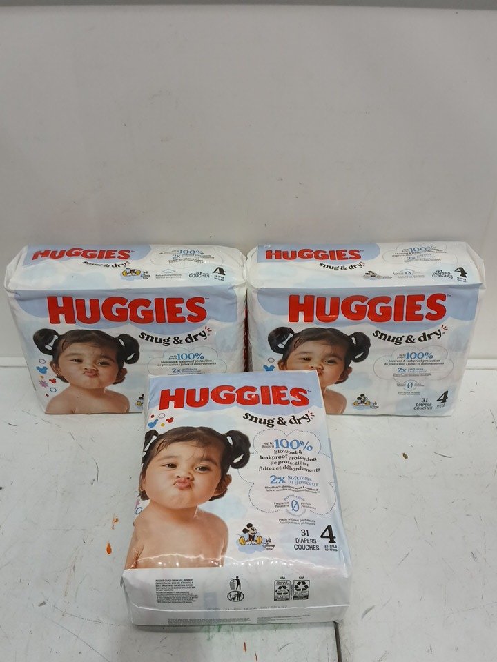 3 (31pk) huggies snug and dry diapers - size 4 - 22lb to 37lb - disney mickey mouse