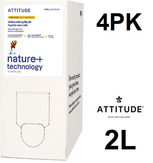 4pk ATTITUDE Plant Based Dishwashing Liquid Refill - 2L - Citrus Zest