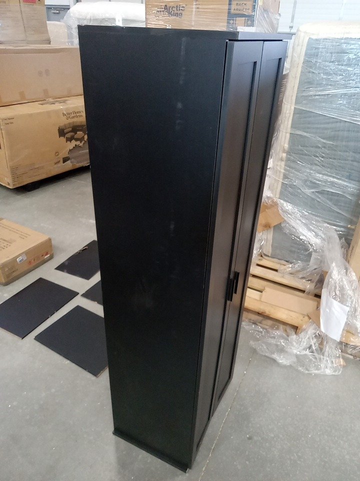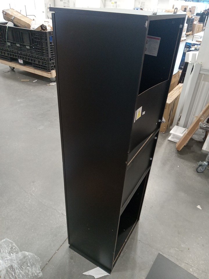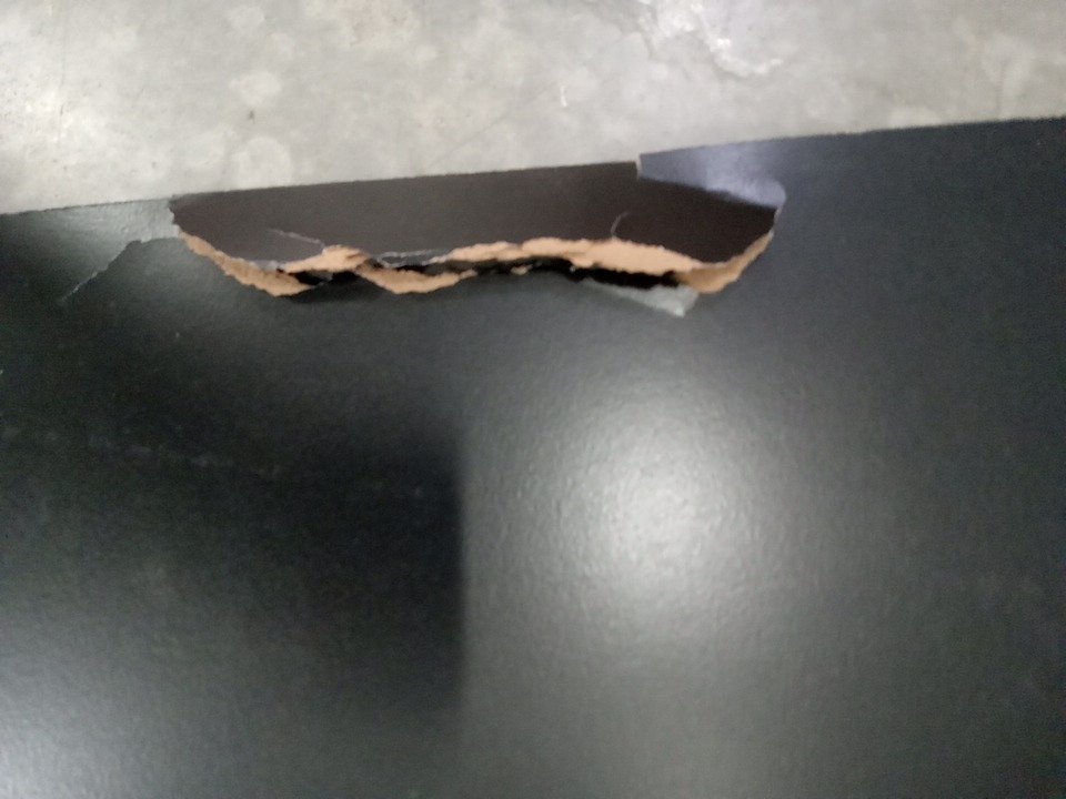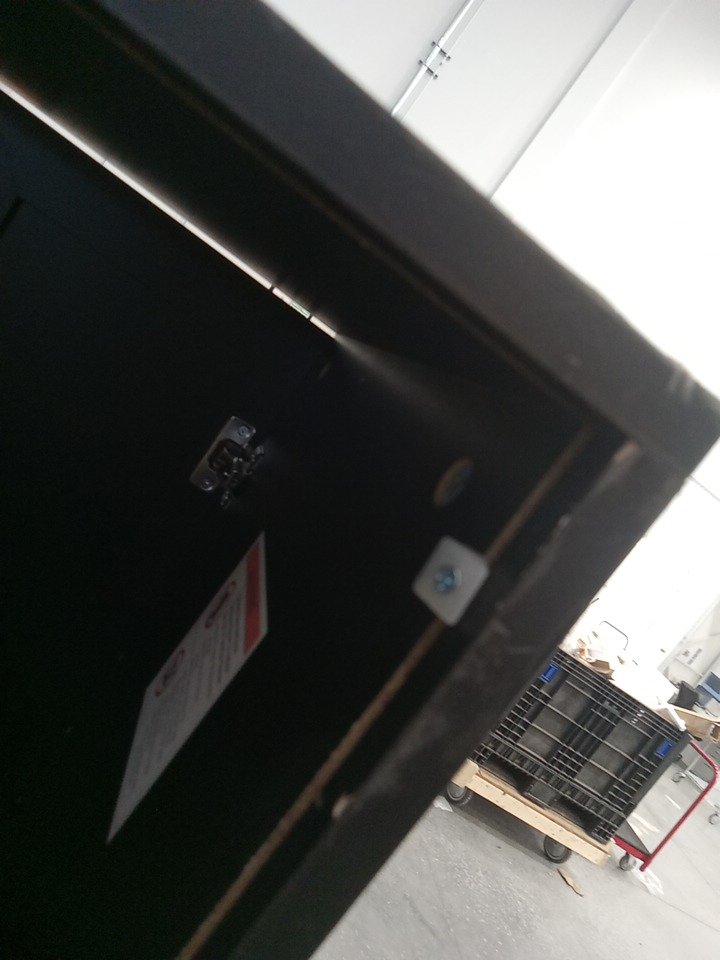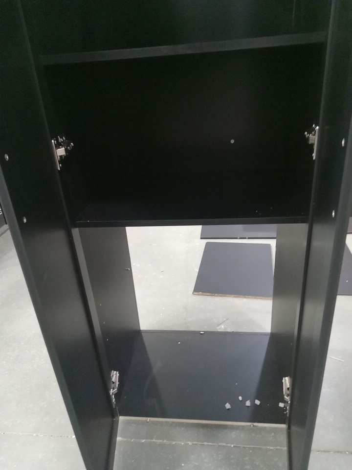 Item has been previously built and is missing some hardware. The back panel/ply are damaged and are loose which will require additional hardware for assembly. There is multiple scuffing and chipping present on the cabinet from loose shipping/storage. The cabinet needs to fixed as the frame is lightly loose.