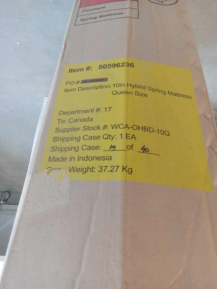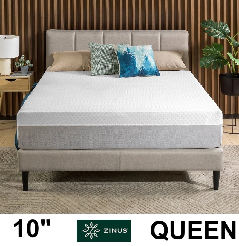 ZINUS 10" HYBRID SPRING MATTRESS - QUEEN - WHITE (MODEL: WCA-OHBD-10Q)