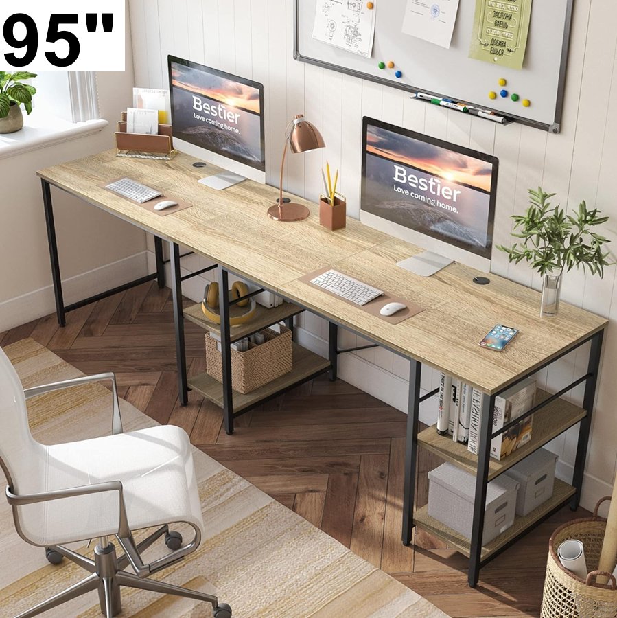 BESTIER Reversible Corner Computer Desk with Shelves for 2 people - 95" - OAK