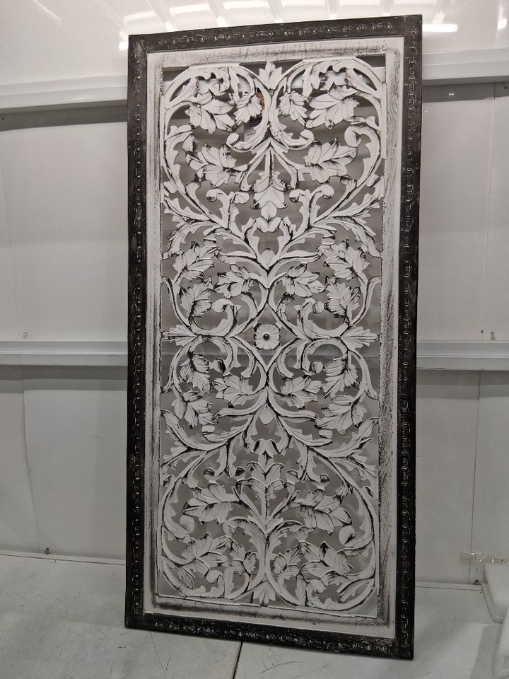 Deco 79 Mango Wood Floral Handmade Intricately Carved Arabesque Wall Decor - 24" x 51" - white/grey (model: 34132 ds)