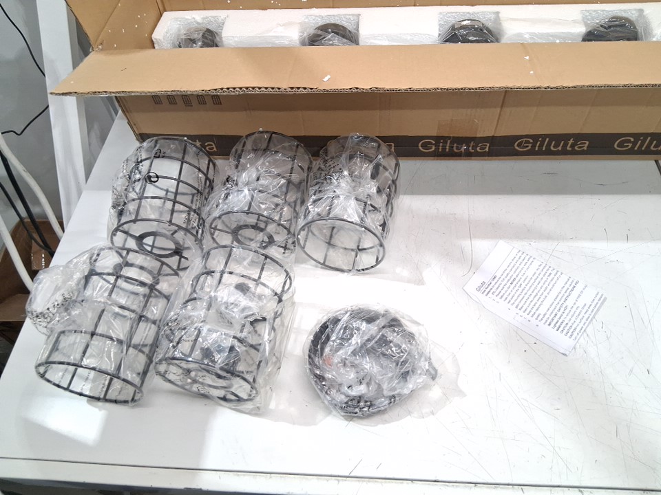Giluta Industrial Linear Kitchen Island Pendant Lighting Fixture with Rustic Metal Mesh Cage - E26 Bulbs / 60w - black/brown - (model: c0089)