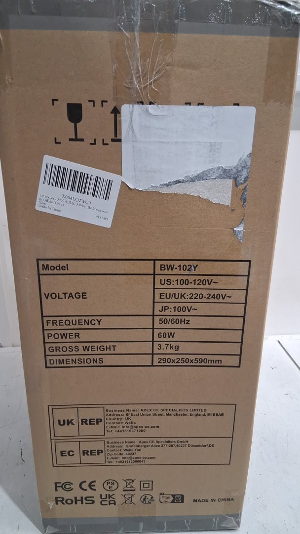 Portable 3-speed evaporative air cooler with remote control - 1.6gal capacity - 30" - white/black (model: bw-102y)