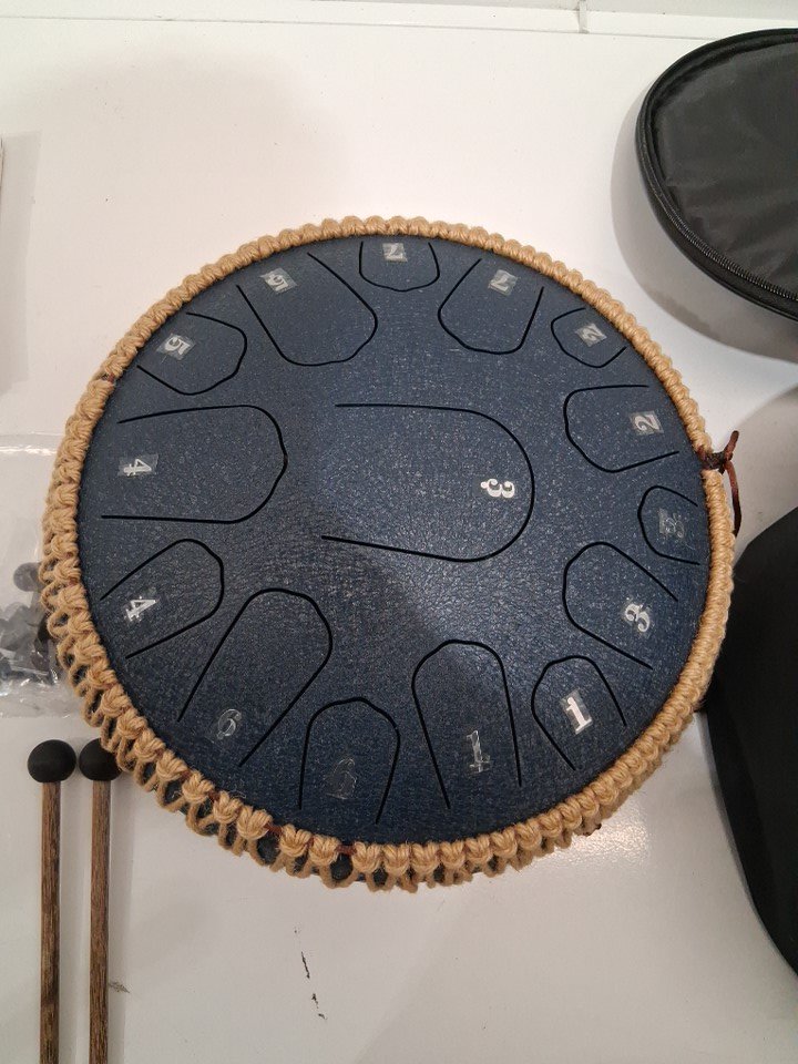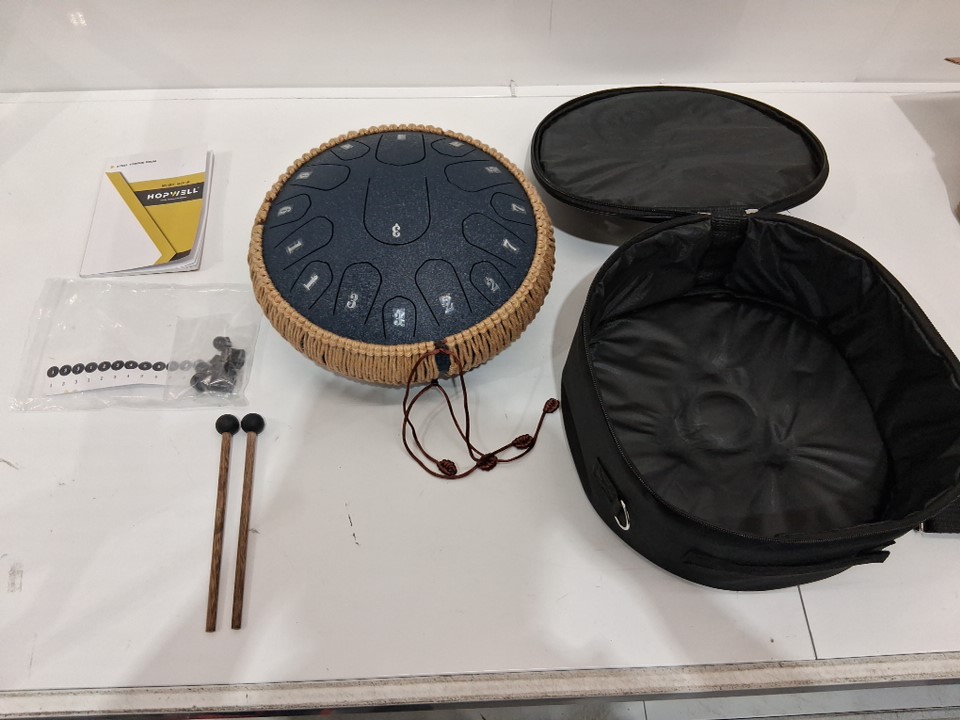 hopwell Steel Tongue Drum with 15 notes, Hand Pan Drum with Music Book, Drum Mallets and carrying bag - 12" - black