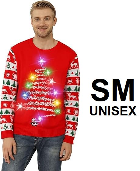 unisex adults duolz light-up knit long sleeve crew neck ugly christmas sweater - small - red / white