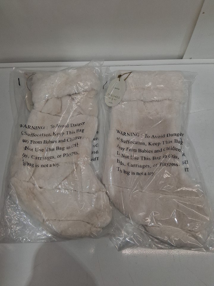 2 THRESHOLD channeled faux fur fuzzy christmas stockings - 20" - ivory white (model: 065-15-5988)