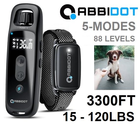 ABBIDOT waterproof Dog Training Collar with Remote FOR 15LBS TO 120lbs dogs- 5 Training Modes & 88 Levels - 3300FT - black (model: AB-T30)