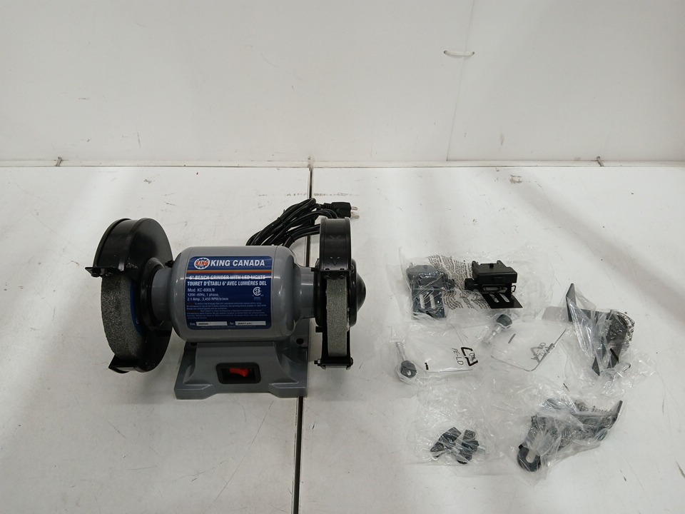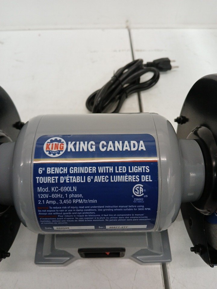 king canada slim line series 6" bench grinder - 3450rpm - 2.1amp - blue/black/grey (model: kc-690ln)